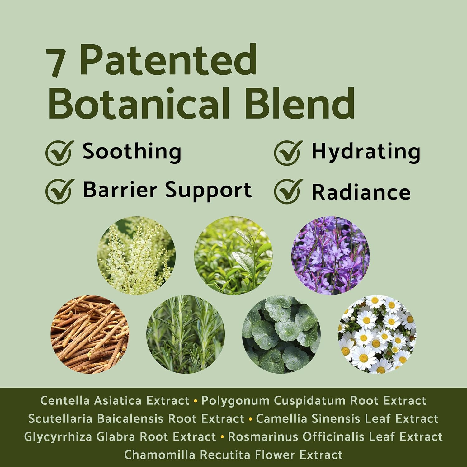 MultiEx BSASM is a blend of seven natural extracts, which are Centella Asiatica Extract, Polygonum Cuspidatum Root Extract, Scutellaria Baicalensis Root Extract, Camellia Sinensis Leaf Extract, Glycyrrhiza Glabra (Licorice) Root Extract, Chamomilla Recutita (Matricaria) Flower Extract, and Rosmarinus Officinalis (Rosemary) Leaf Extract.