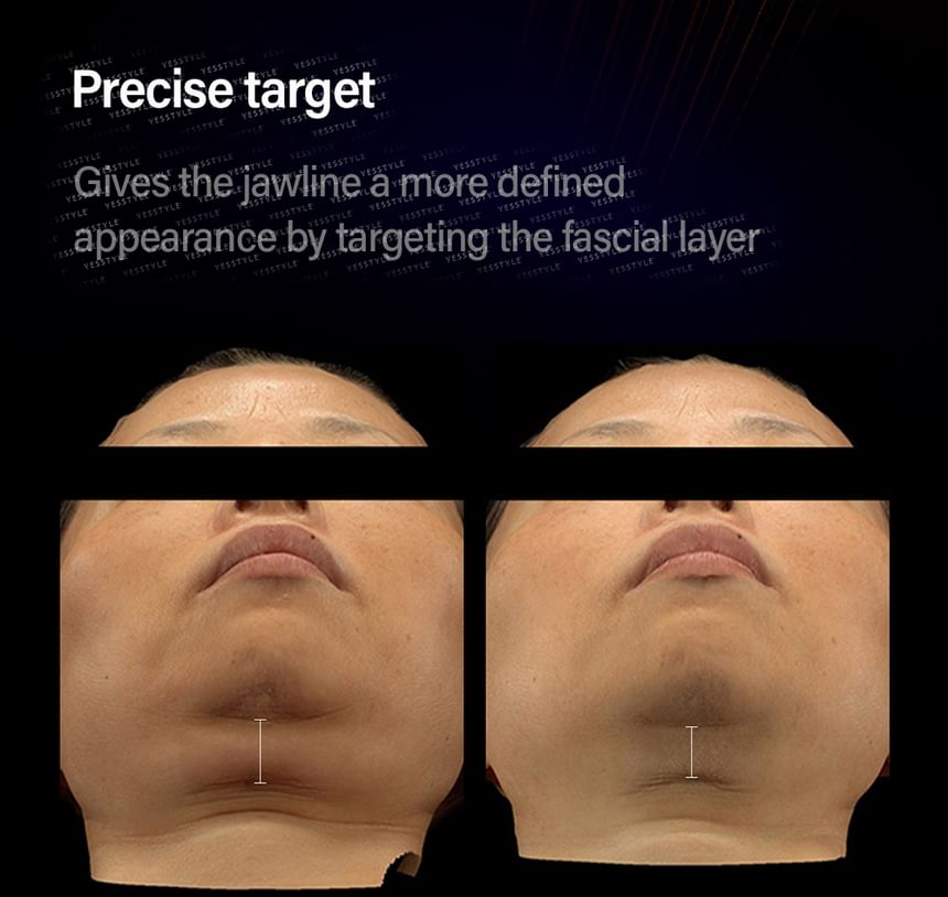 - Less painful by not damaging the outer skin and only delivering energy to the 4.5mm inside the skin (SMAS).