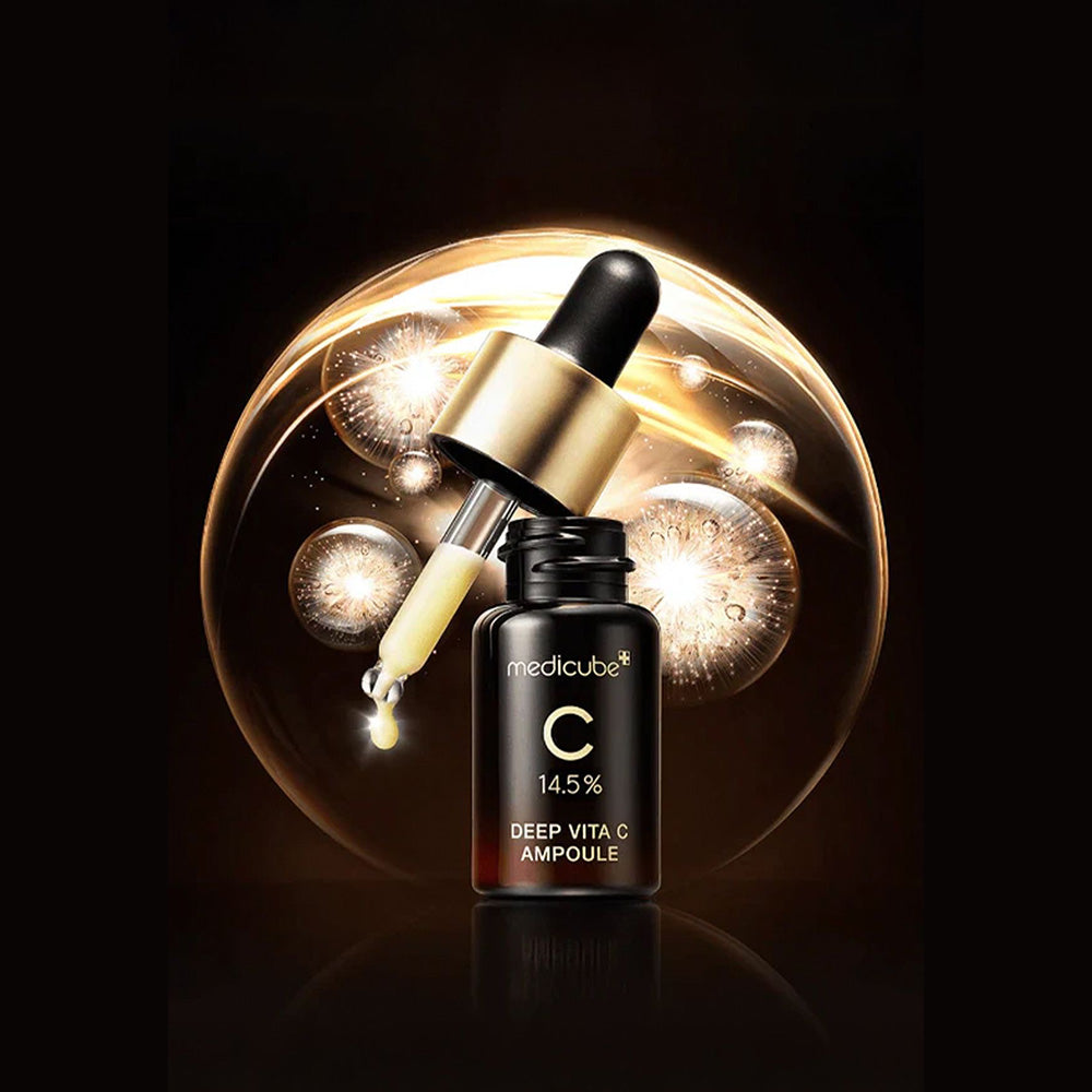 Medicube Deep Vita C Serum is a facial serum that is a water-based serum with 14.5% vitamin C and Alpha-bisabolol to reduce hyperpigmentation, even out skin tone, and enhance skin radiance.