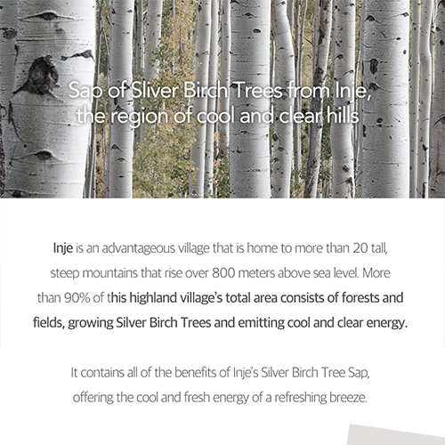 - 3-step moisturizing care filled with moisture - STEP 01 Moisture pathway open Glyceryl Glucoside promotes the production of Aquaporins, opening the skins moisture pathway, STEP 02 Moisture hydration Moisture boosting effect that does not dry out the abundant moisture of the Inje Tree Birch Sap, STEP 03 Moisture lock Vita Hyaluronic Acid forms a moisture film to increase the moisturizing power of the skin and to keep it moist.